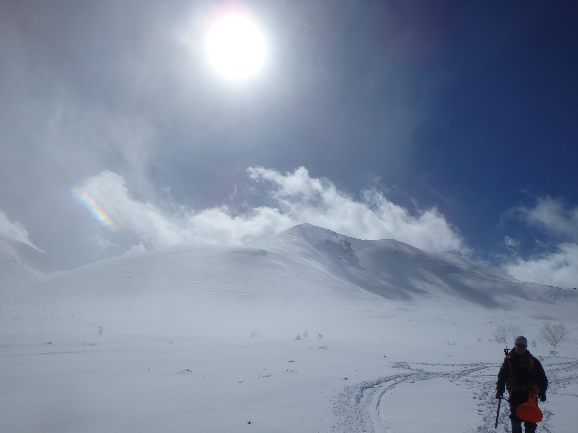 Mt.乗鞍スノーリゾート駐車場(8:30)→カモシカリフト終点(9:30)→肩の小屋口付近(12:30)→朝日岳(13:10)→剣が峰(13:30)→駐車場(15:40)