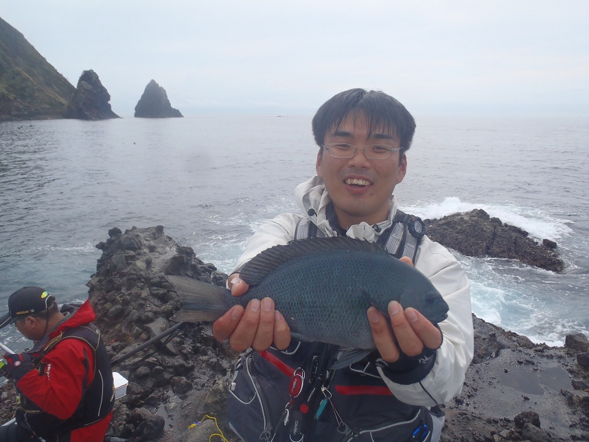 その後はシイラが去ったせいか、メジナの活性が上がったようで3人が同時にメジナを釣り上げることもあった。メジナのサイズは自分は30cmまで。尾長も少し混じっており、引きは十分に楽しむことができた。