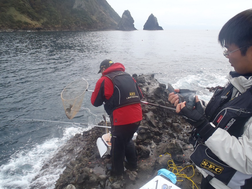 お昼にはメジナに加えてシマダイやイサキが釣れ、状況が良くなったように思えたが、13時近くになると潮が上がり、足元1段下まで波をかぶるようになった。危険と判断して早上がりすることにした。他の場所ではバッカン流しがいくらかあったようだ。