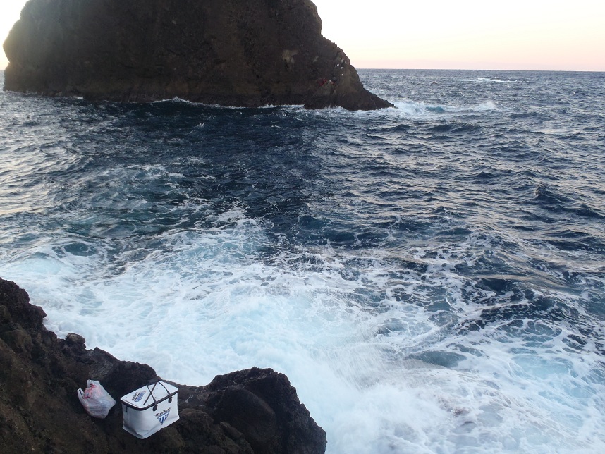 自分の釣座はサメノリとフコウの間の水道の入り口付近で、足元にはサラシができていた。