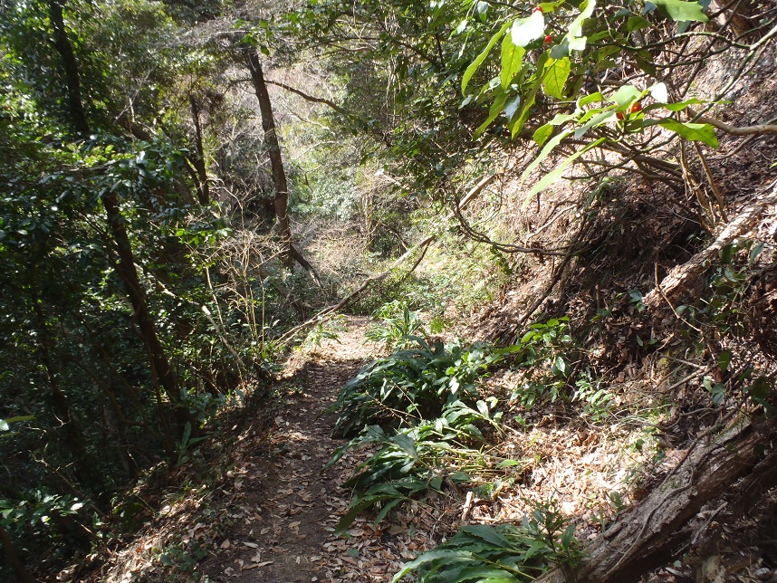 浜金谷駅について、案内標識に従い進み、鉄道を潜ると正面に沢コースの登山口が見えた。登山道はぬかるんだ場所や、滑る岩、倒木などがあり、念のために崖側に体を傾けないように注意する必要があった。途中のトンネルの中も真っ暗なうえに足元が滑りやすかった。登山靴使用が吉。