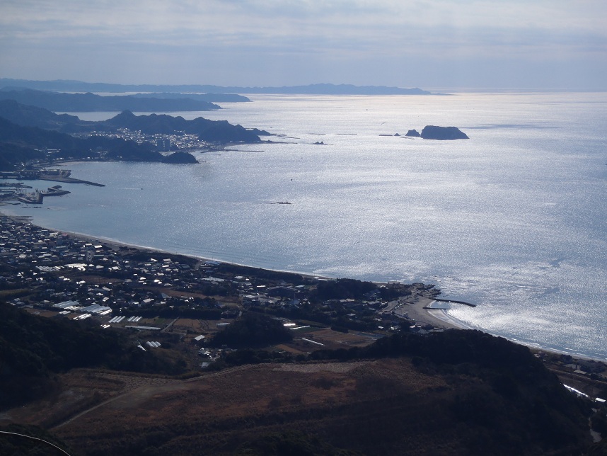 1時間程で山頂の小さな広場に到着。やっと視界が開け、金谷方面の東京湾を眺めることができた。