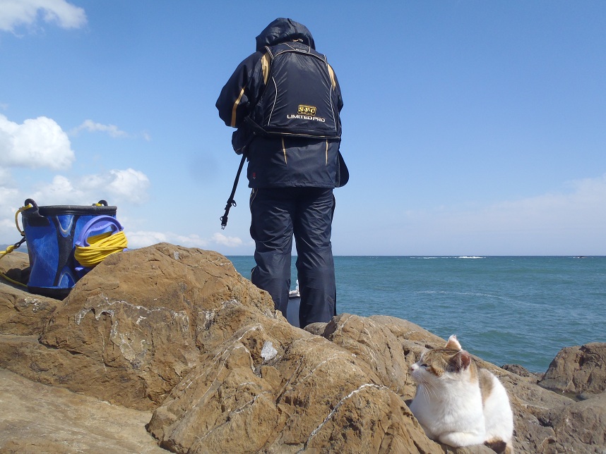 浮を流してみたが足元で小さなメジナがかかった以外は反応無し、szさんがキビナゴを付けた投げ仕掛けもゴミを拾うのみだった。