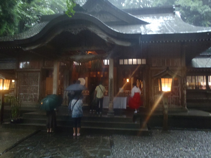 鬼の洗濯板を眺めた後に青島神社を拝するが、復路の弥生橋で通り雨に遭う。