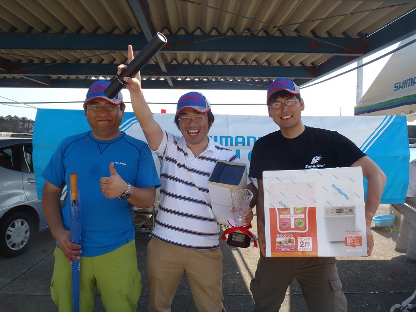 6:00~12:00 szさん、ngと釣りの大会に参加した。 くじを引いた結果、第一便で自分は立島の沖側に渡った。 同じ場所に渡ったのは老紳士な感じの方だった。 自分がもたもたと仕掛けを準備しているうちに開始時間になってしまったが、おじ様は期待できる場所であることや潮の向きなどを教えてくださった。 午前中はハナレとの間の水道に重い仕掛けを落としてみた。 深いタナに大きなメジナがいると期待して、投入場所を変えながら探ってみた。 しかし餌を取られることなく時間だけが過ぎていき、とうとう釣座交代まで釣果無し。 おじ様はおそらく軽い仕掛けで30cm程のメジナを2尾釣られていた。 後半戦も重い仕掛けで始めたが反応無く、さすがにこのままではいけないと思い、軽い仕掛けに変えた。 が、時既に遅く、日が高くなってからは潮が澄み、魚の姿は見えず。 釣れる魚はアイゴばかり。 「朝以来駄目だねー」とおじ様も落胆気味。 最終的に水中浮でタナをしっかりととる仕掛けで足元からハナレの際まで探り続けたが、アイゴ、サンノジ、カワハギが釣れて終了時間になってしまった。 最後は心が折れ、2匹目のカワハギを狙うという失態。 半ば放心状態で港に戻ったが、釣果1匹のszさんと合流してお互い慰めあいながら道具を片付けた。 しばらくして第2便のngも港に戻ってきたが、第一声が「やっちまった」だった。 なんだ、お前もか、しかたないな。 なんて思っていたら40cm強のメジナを含む、5匹で3500g弱の釣果。 伊浜会場ではトップの釣果で大会準優勝。おめでとうございました。 大会の帰りはいつも疲れているものだが、メジナボウズということもあり、ngの準優勝で興奮したこともあり、この日は今までで一番の疲れ具合だったかもしれない。 伊豆高原の湯の休憩場でひっくり返り、その後も車の中で昏迷。 |