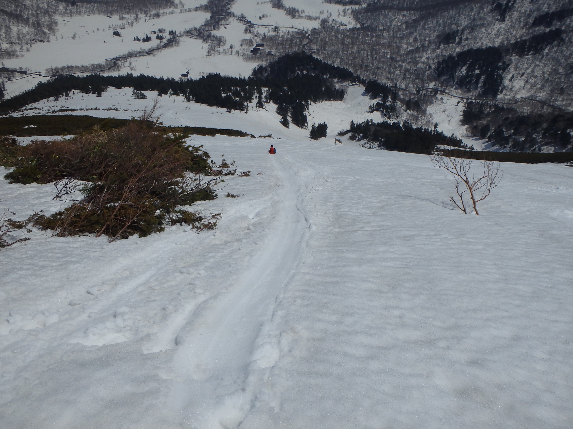 山の鼻までの斜面ではたびたびシリセードで滑って下れる。