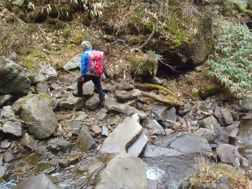六林班峠からは延々と続く笹踏みと沢越えに閉口。