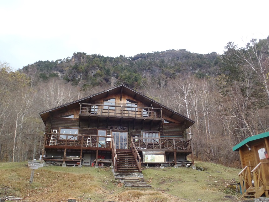 行きでは見られなかった沢と終わりかけの紅葉を目で楽しみ、カジカ荘で温泉に浸かって痛む脚を癒した。