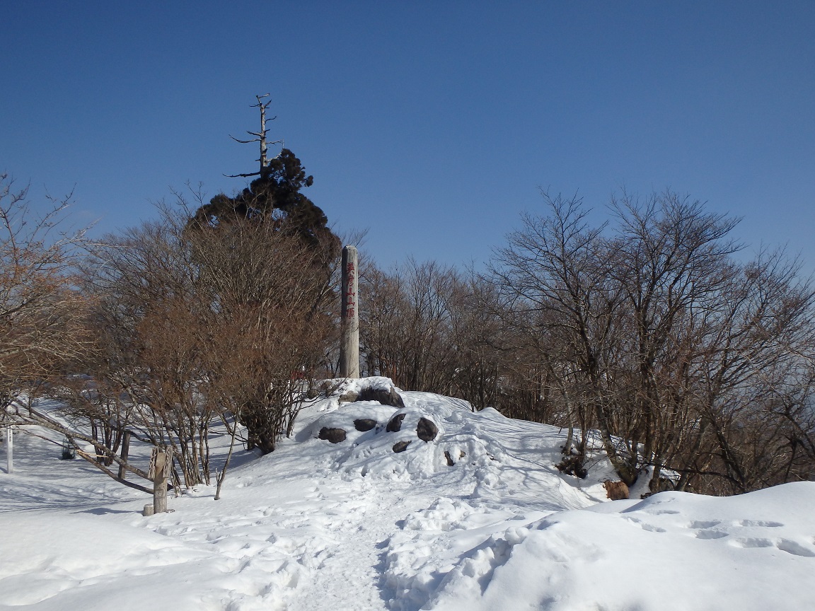 岩を削り、梯子を架けて整備された登山道を進み、1時間程で山頂に到着。
