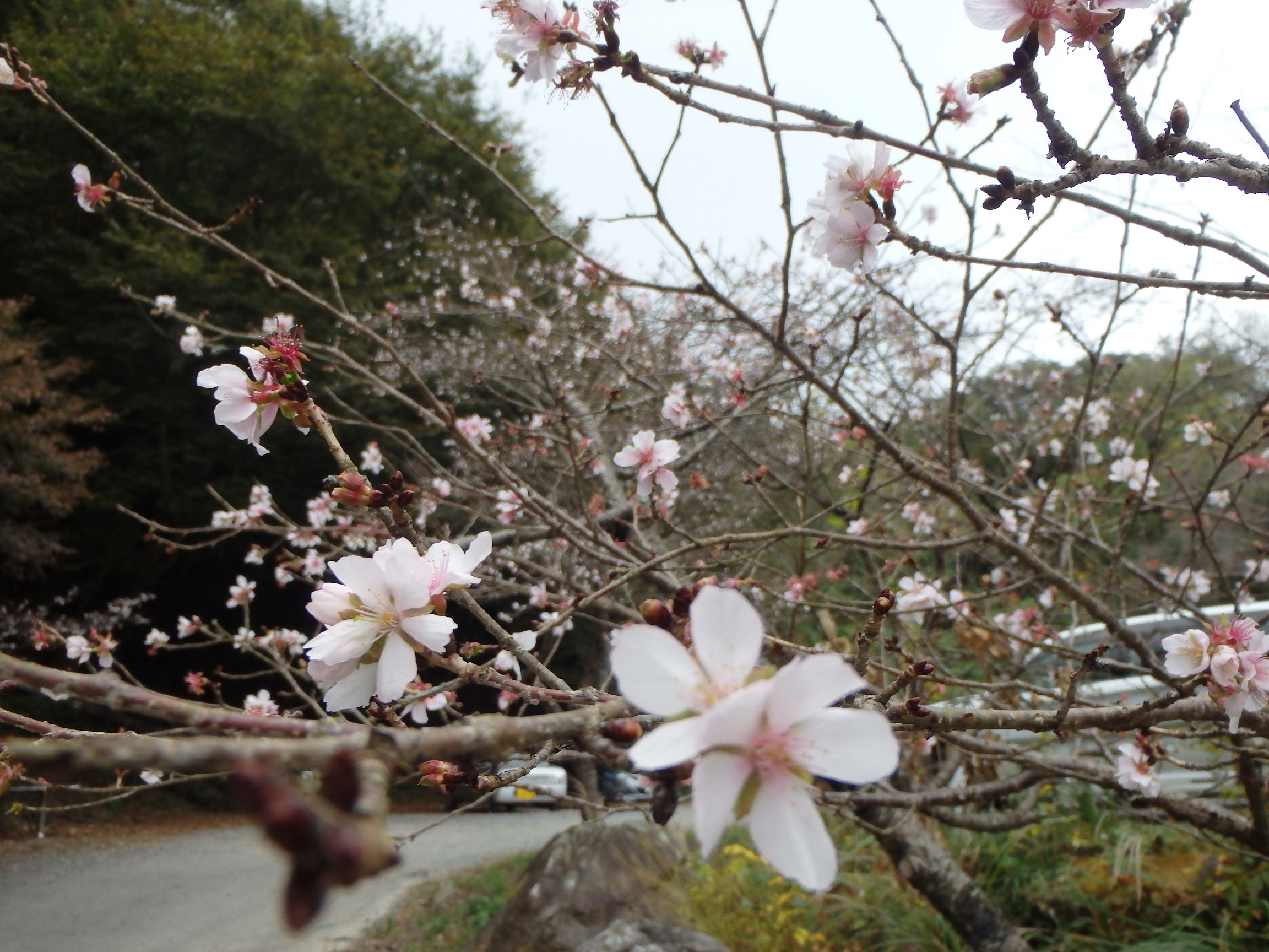 庚申山ふもとのカジカ荘の駐車場に15:30に到着した。