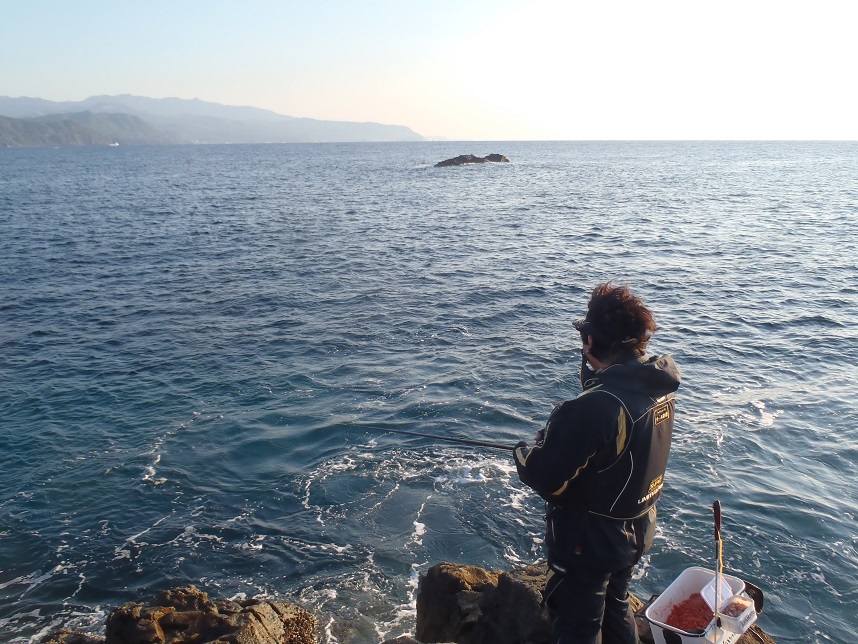 昼になって北風が強く吹き出し、磯の前に川のような激流ができてしまい釣りにならなくなった。