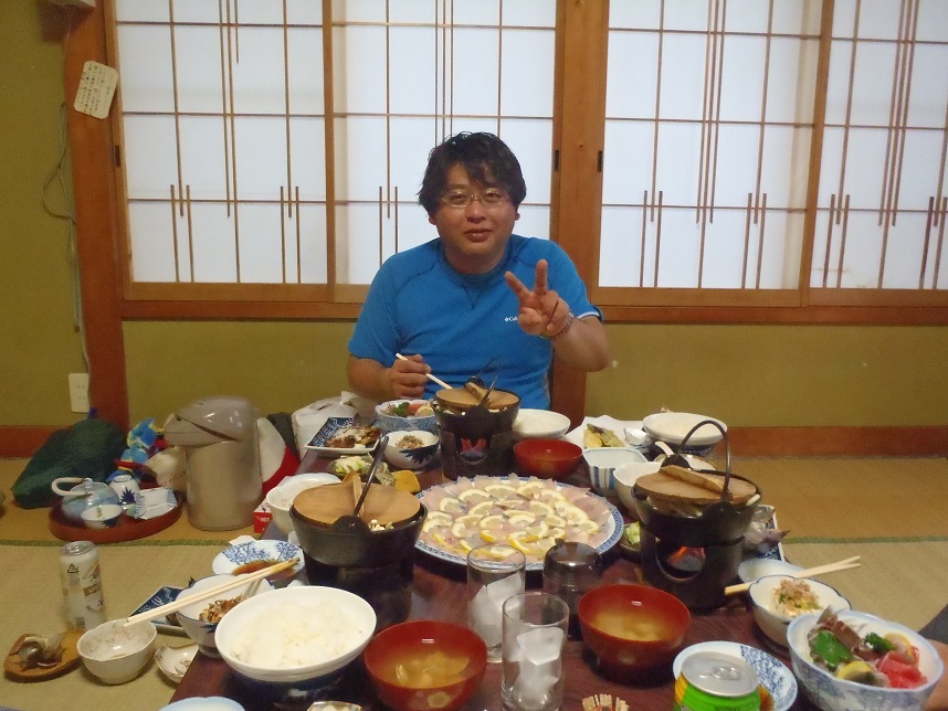 その後は伊浜の宝洋丸さんの民宿で釣果を刺身にしていただいたものを合わせて夕食を頂き、立ち上がれなくなるほどたらふく食べ、ビールを飲んだ。