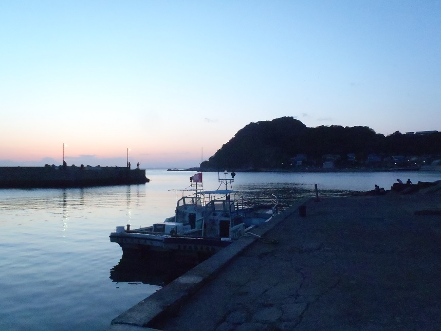 イシキリの船着場である北側に二人並んで、サメの方向の海藻の生えた根周りを探るように釣を始めた。北風が逆風なため、Bの浮と水中浮を使って、道糸を張りながら仕掛けを沈めてみた。
