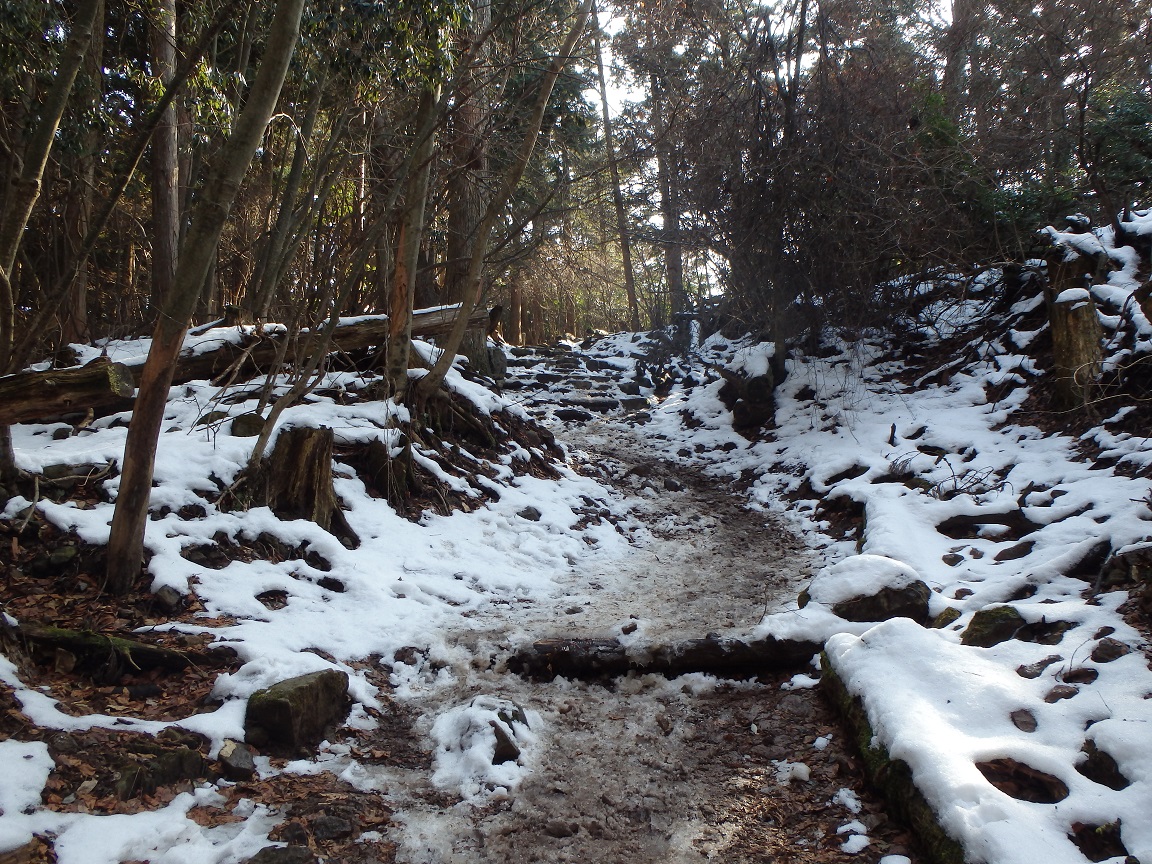 参道までの道で下山した方に会い、アイゼンがいるかどうかを聞いたが、特に必要ないとのこと。冬山装備を持ち帰っていなかったのでほっとした。