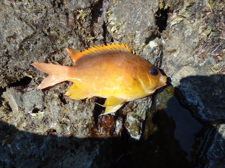 続けて磯際でもう1匹釣れたが、どちらも20cm程の尾長メジナだった。