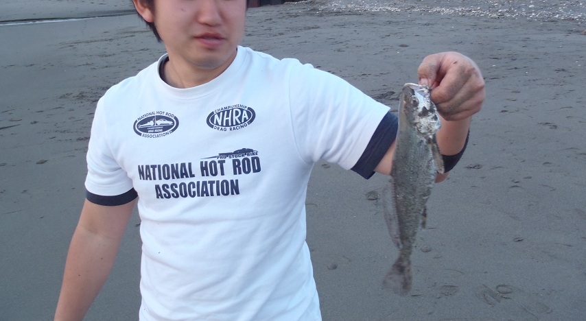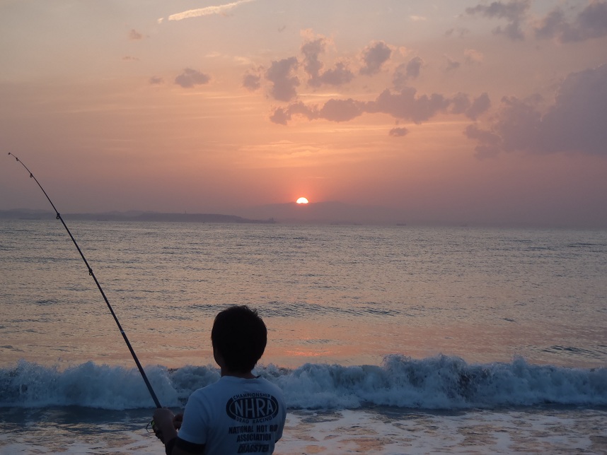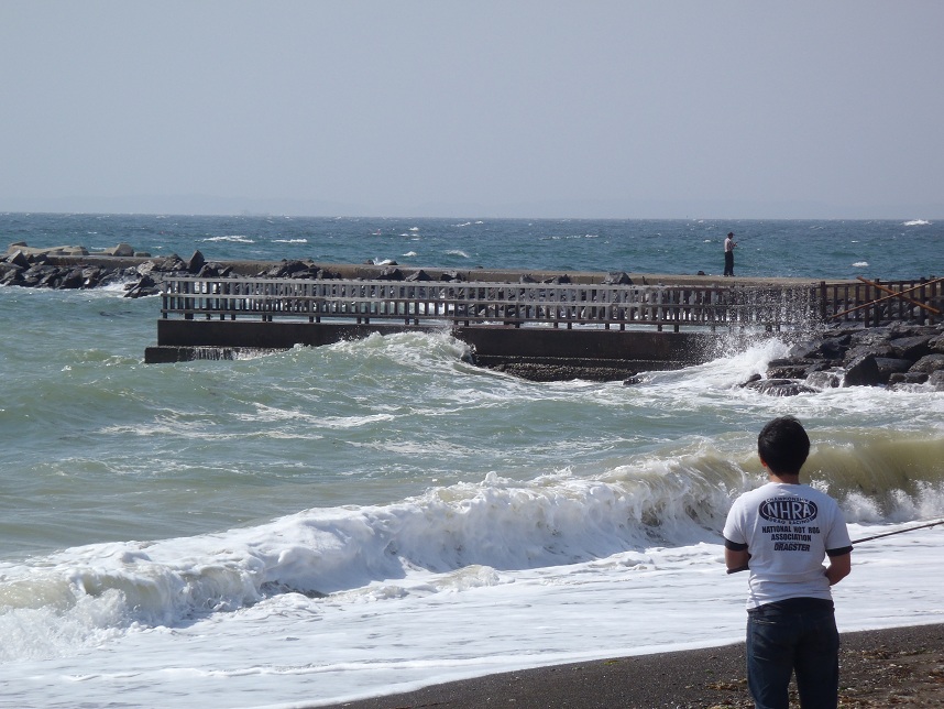 早々と場所移動することにし、上総湊へ向かった。上総湊の浜には海藻があまり無く、横風を除けばなんとか釣りができた。しかしすぐに釣れたのはフグとエイ。いやな予感がしたものの、釣りを続行するとmrさんには小さなイシモチ、自分にはキスがかかった。