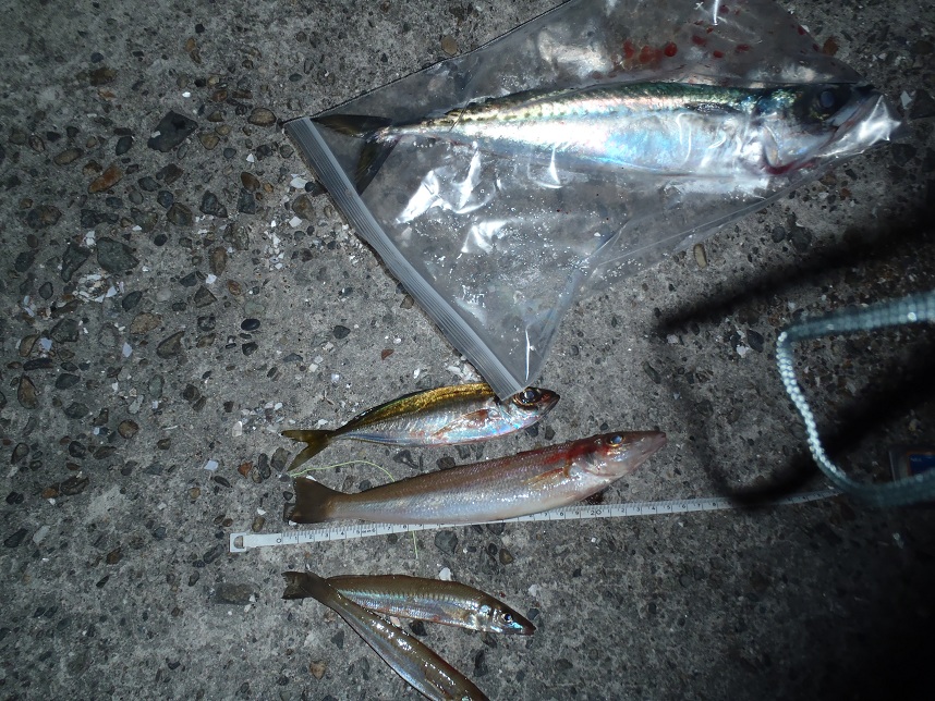 この日の灯台島は昼はタナゴとサバが群れていた模様。日が暮れるとアジが回ってきたらしいが納竿。