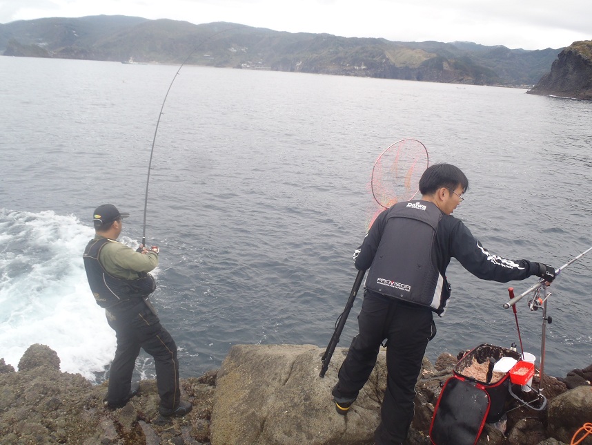 8時前になって平島へ移動した。潮が引いても少し荒れていたので、もしものためにピトンを挿し、陸向きに釣座を構えた。しばらく反応のない時間を過ごしたが、撒き餌が効いてくるとメジナがポツポツと釣れ始めた。島を回りこんでくる潮のせいか、道糸をたるませると浮が先行して仕掛けが浮いてしまいあたりが出なかったように思われた。