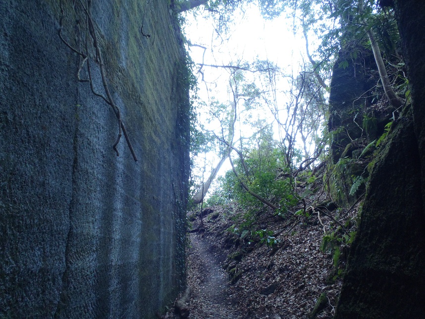 浜金谷駅について、案内標識に従い進み、鉄道を潜ると正面に沢コースの登山口が見えた。登山道はぬかるんだ場所や、滑る岩、倒木などがあり、念のために崖側に体を傾けないように注意する必要があった。途中のトンネルの中も真っ暗なうえに足元が滑りやすかった。登山靴使用が吉。