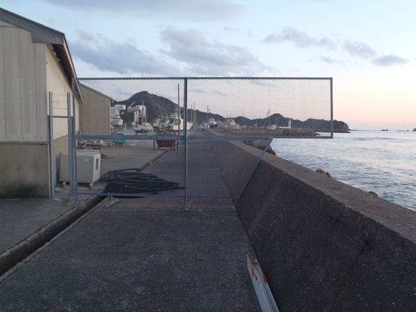 保田港の北にある小さな港、野布良港には保田港堤防へ続く場所にフェンスがあった。