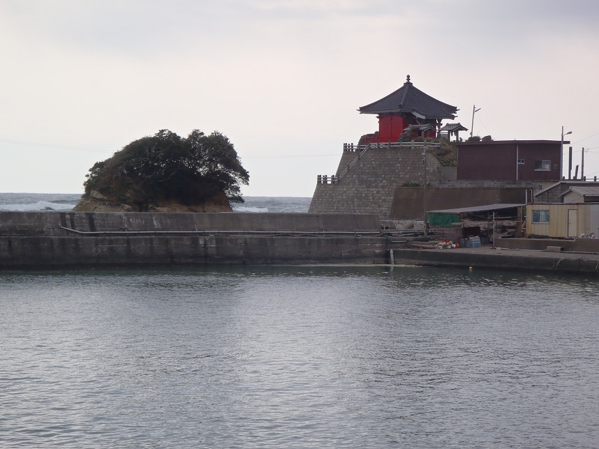港内小突堤から岩船地蔵尊。