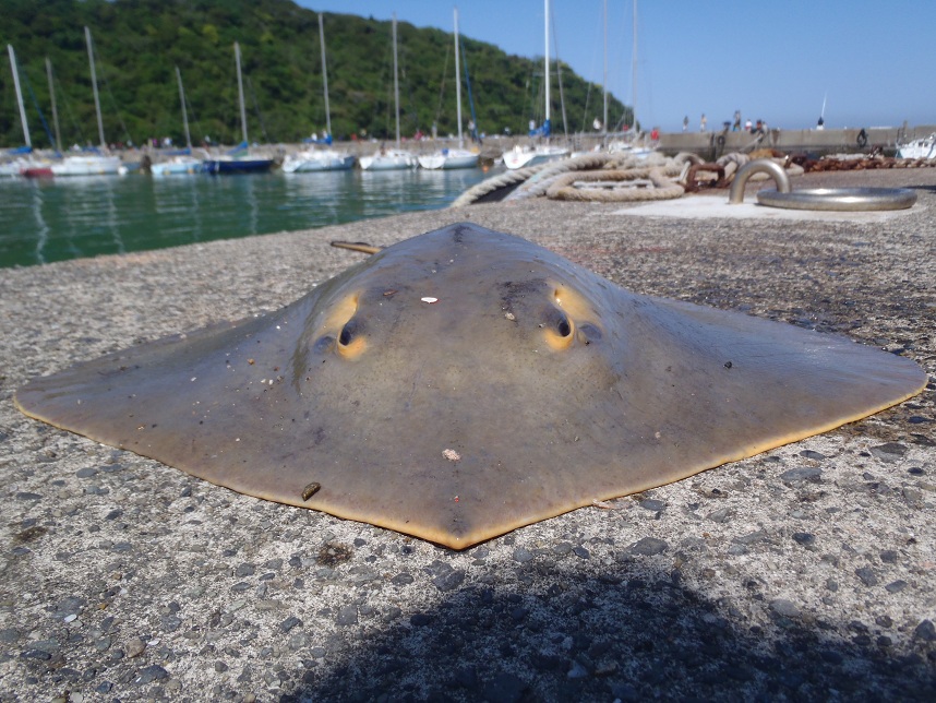 ngは浮釣りのほかにネンブツダイやヒイラギで泳がせ釣りをしていたが、アタリがあり、しばらくの格闘の末に大きなエイを釣り上げていた。