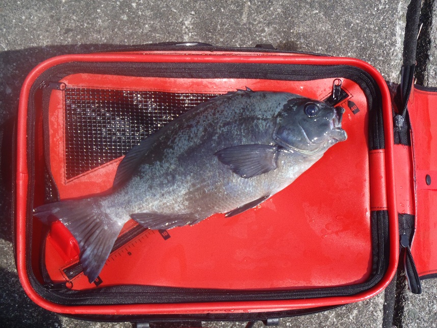 ハリスを擦られないようにしながら上げてみると痩せてはいるが40cmほどの口太メジナだった。