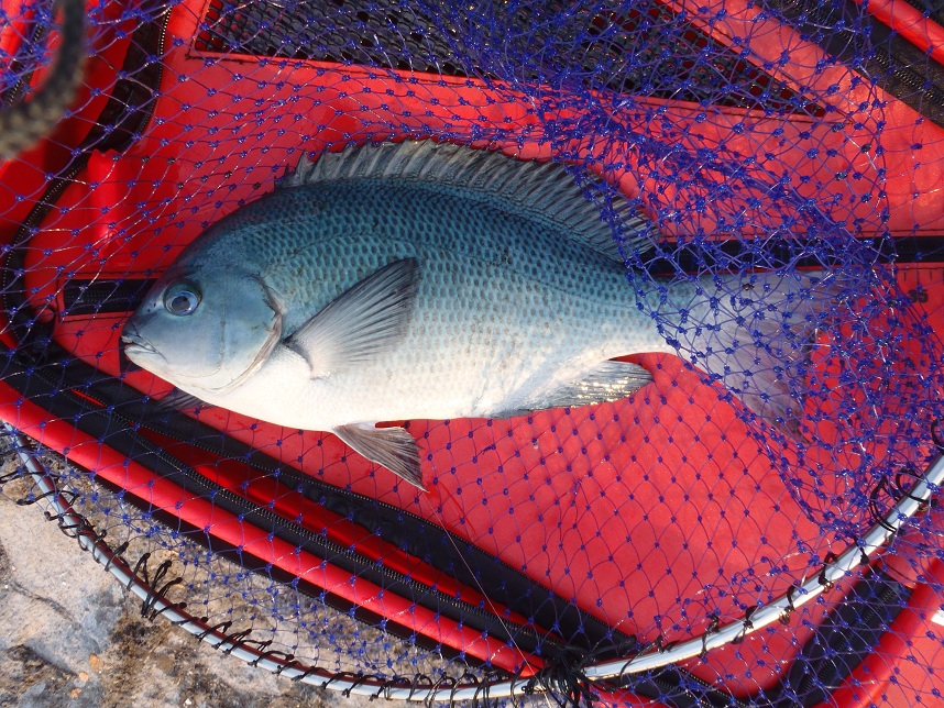 日が高くなるとアタリが遠のき、仕掛けを重くして沈めるとたまにメジナが掛かる程度。