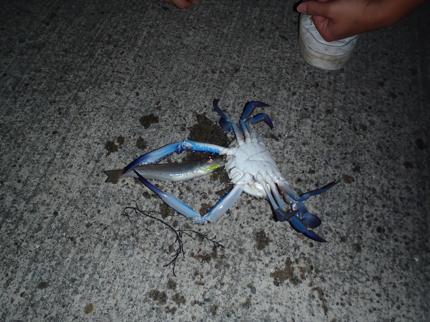 22時ごろにskさんが仕掛けを回収すると何かが付いていて重いらしかったが、上がってきたのはキスと蟹。
