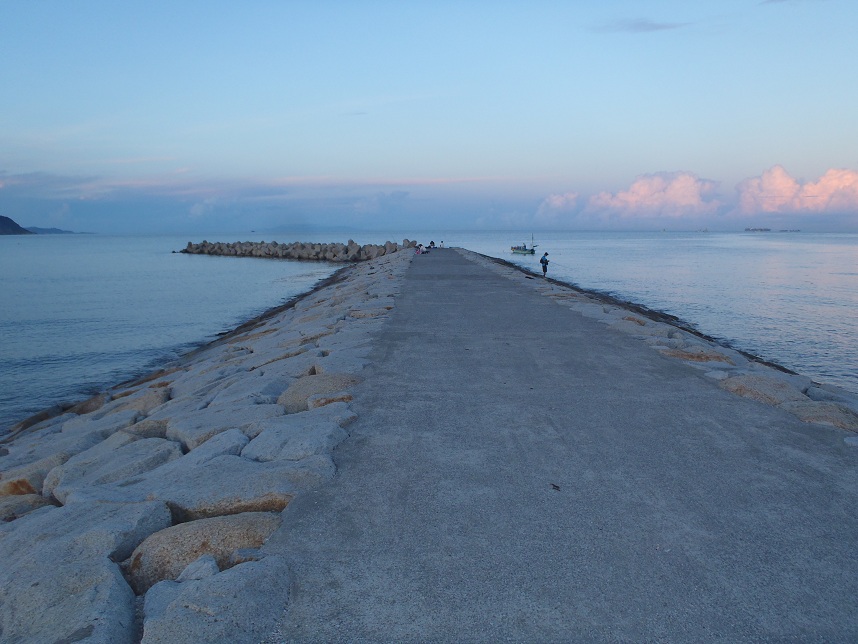 3人ともにゴンズイばかりが釣れたので、自分は投げを見限って突堤の先に向かって青イソメを餌に浮フカセ釣りを始めた。