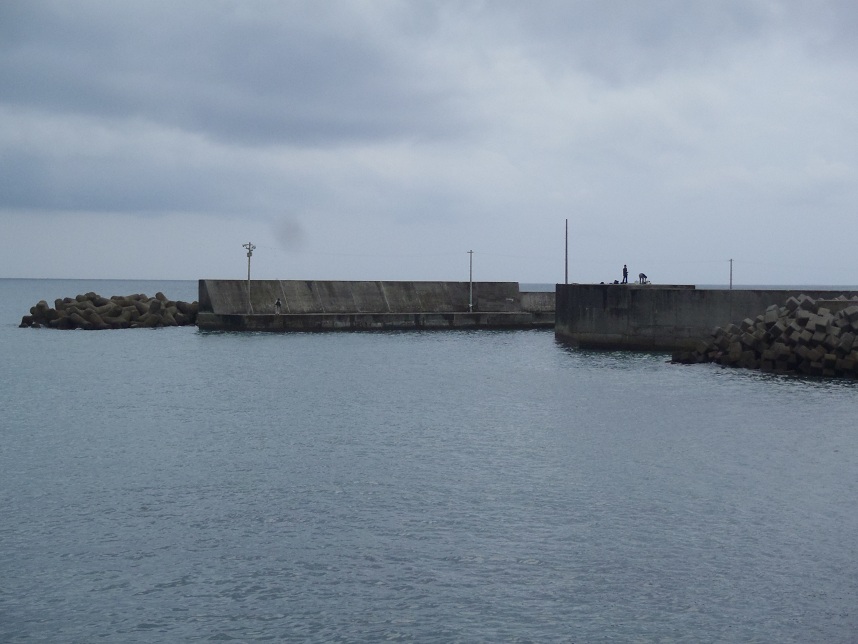 港内側に仕掛けを落としてあちらこちら探ったが、小魚にイソメのおしりを齧られるあたりが多かった。