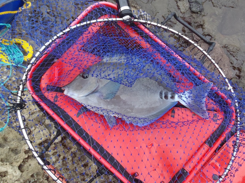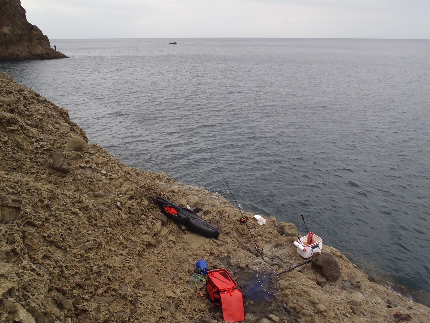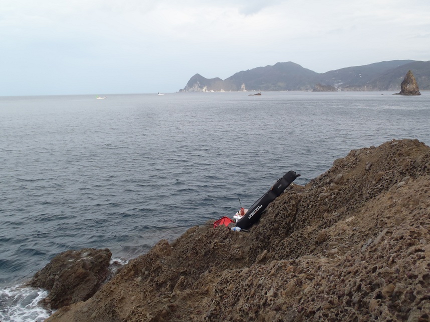 自分の他にフコウ北側に渡った釣り人は一人で、4,5人は入れそうな広い磯を南北で2分して自由に使うことができた。