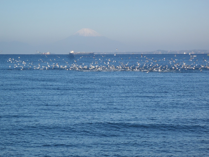 8時前に突然沖側で大きなナブラができ、鳥が群がっていた。