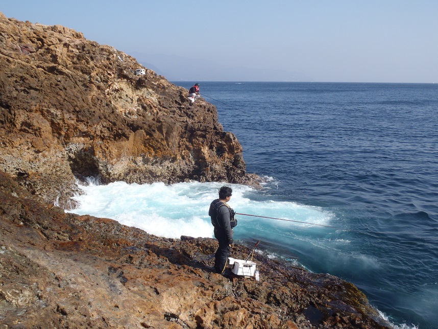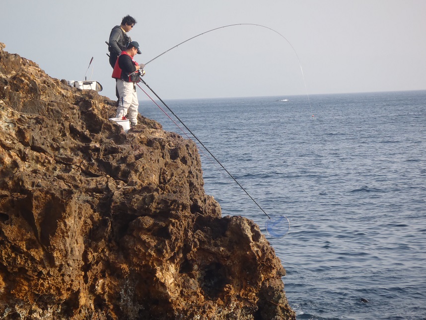 磯の北側の足場の高い船着場でszさんとykさん、自分は少し南側の低い場所で釣りを開始した。