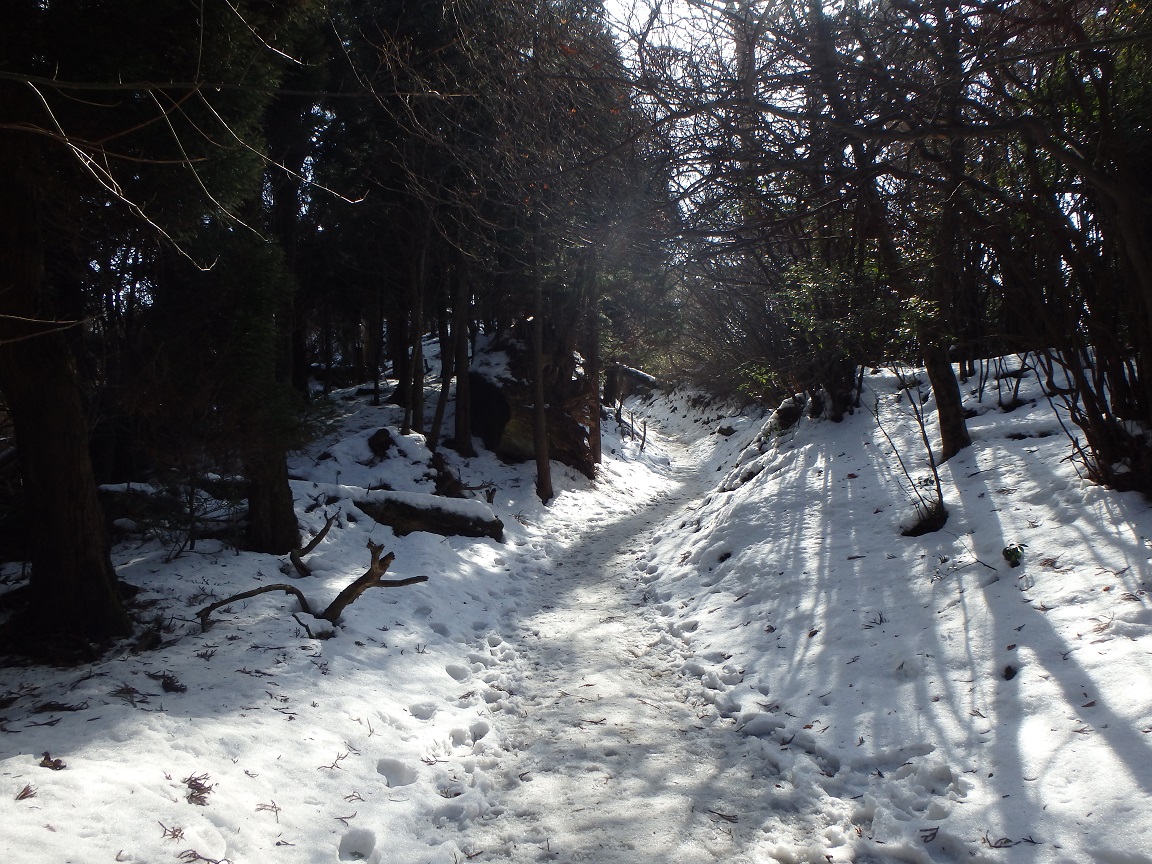 福岡県英彦山 ・ルート 別所駐車場→奉幣殿(11:10)→中津宮(11:50)→産霊神社(12:10)→上宮・中岳頂上(12:30)→奉幣殿(13:20) 以前から登ってみたかった英彦山。 実家に帰ったついでに登ってみることにした。 別所駐車場まで父親に車で送ってもらったが、道端に年末に降った雪が残っていた。 参道までの道で下山した方に会い、アイゼンがいるかどうかを聞いたが、特に必要ないとのこと。冬山装備を持ち帰っていなかったのでほっとした。 参道の石段を上がって奉幣殿に到着。一休みして登山道へ向かった。 登っていくと休憩所があり、登山者の方にお話を伺ったところ、今年は特に積雪が少ないそうだ。 その後、岩場に到着するも雪が硬くなって滑り、登るのに苦労した。 周りの方もアイゼンを着けているし、初心者の自分は軽アイゼンだけでも買ってくるんだったと後悔。 岩場を過ぎると登山道の端では雪が柔らかくなり、足首まで埋もれながらも安全に進むことができた。 頂上にある上宮付近で休憩所であった方に再会し、岩場を避けられるスキー場側の道を下りで使うと楽だと助言をいただいた。 その道は踏み跡が少なく、雪をしっかり踏み込んで下っていくことができた。 下山後は駐車場付近の公園でお弁当を食べ、しゃくなげ壮で温泉に入って帰路へ。 |